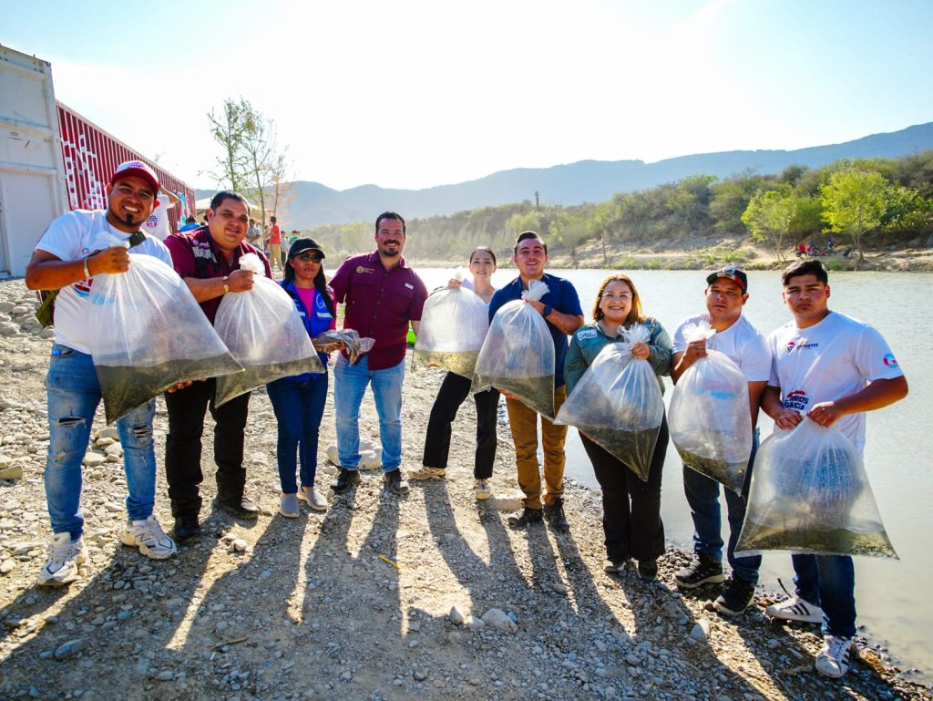 El alcalde de García, Manuel Guerra Cavazos, encabezó la siembra de 25 mil tilapias en “La Playita de García”, acompañado de su esposa, la presidenta honoraria del DIF Municipal, Ana Paula Ríos Garza.